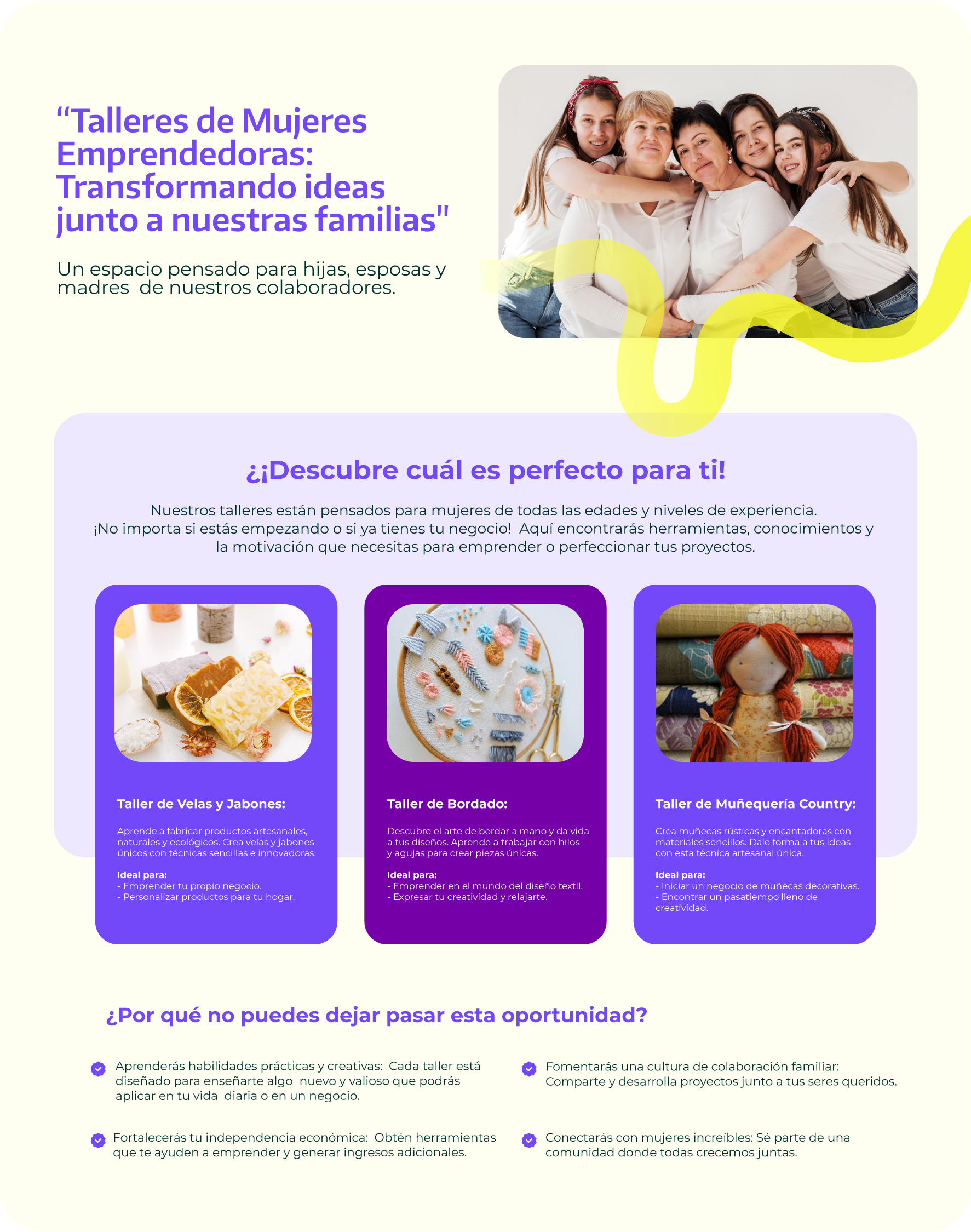 En Transportes Valvanera, sabemos que las mujeres tienen un poder transformador, y queremos impulsarlo. Únete a nuestros Talleres de Mujeres Emprendedoras, un espacio diseñado para ti, para tus ideas y tus sueños. Aprende habilidades prácticas, desarrolla tu creatividad y descubre cómo convertir tus pasiones en oportunidades.